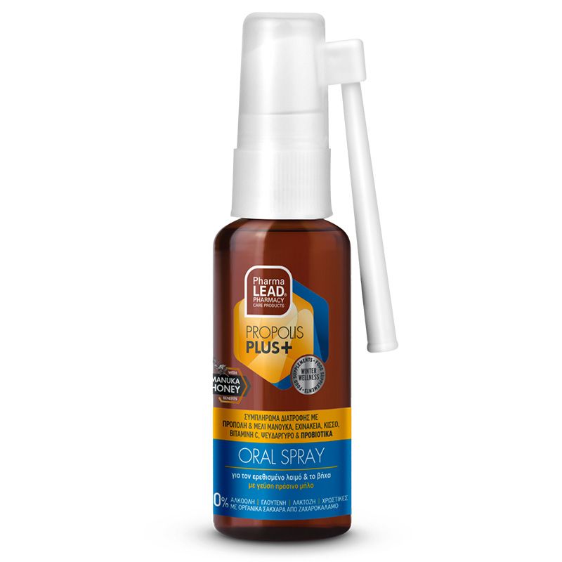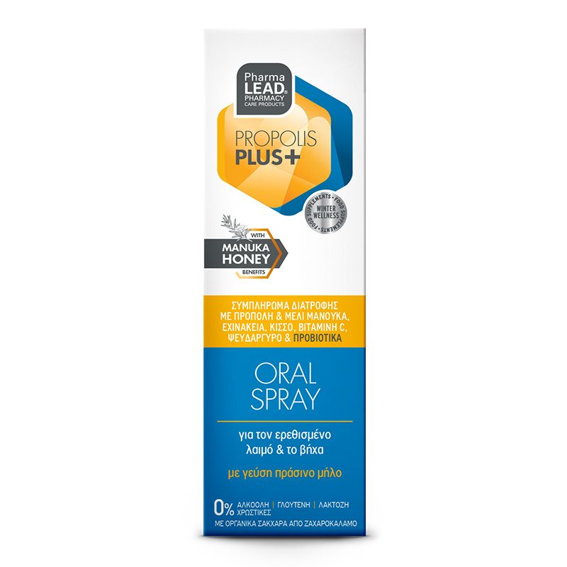 Στοματικό σπρέι με πρόπολη, μέλι μανούκα, εχινάκεια, κισσό, βιταμίνη C, ψευδάργυρο ΚΑΙ μέντα για την ανακούφιση από τον ερεθισμένο λαιμό και βήχα. Ενισχυμένη σύνθεση με προβιοτικά (Bacillus coagulans - Bacillus subtilis -Bacillus licheniformis) για την φυσιολογική λειτουργία του οργανισμού και του ανοσοποιητικού συστήματος.